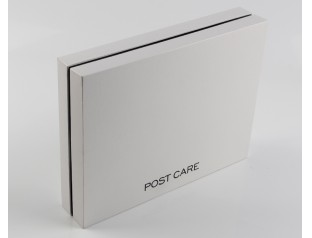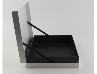 此款服裝包裝盒,采用157g銅版紙裱1000g灰板,商標(biāo)燙黑金,圍邊內(nèi)盒采用黑卡紙裱灰板。此款襯衣包裝盒,選用書本式的書型盒,既增加了盒形的美觀程度,又增強(qiáng)了盒體的牢固程度。襯衫包裝盒,選用經(jīng)典的黑白搭配的對(duì)比鮮明又簡(jiǎn)潔,給人一種大大方方的爽利感覺。