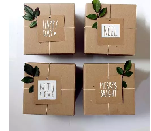 這個(gè)包裝簡單又文藝,牛皮紙盒+ 干花或樹葉+一張卡片,很適合文藝小清新氣息的女生,偶爾來這么一個(gè)包裝,很眼前一亮哦。牛皮紙盒可以到包裝盒廠定制,不過就一個(gè)的話直接在某寶上淘就好了。關(guān)鍵是不用打蝴蝶結(jié)……我知道很多人對(duì)打蝴蝶結(jié)很頭疼。