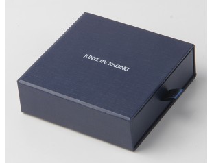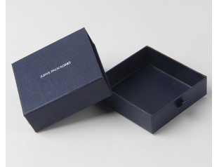 這紙盒子咋一看是黑色的,但認真瞧一瞧之后發(fā)現(xiàn)其實它是寶藍色,盒子表面特殊的花紋處理使盒子變得有質(zhì)感且神秘優(yōu)雅;即使是覆的啞膜,也沒有過多的圖文點綴,但就這么簡簡單單的紙質(zhì)禮品盒也能給人一種端莊而不失優(yōu)雅的感覺;抽屜盒盒型讓盒子更顯精致,也方便禮品的存取,不用擔心會傷到禮品;盒子內(nèi)部也做了啞膜處理更加的精致,也說明了駿業(yè)包裝做的盒子不止做便面功夫,里面的細節(jié)也不馬虎。