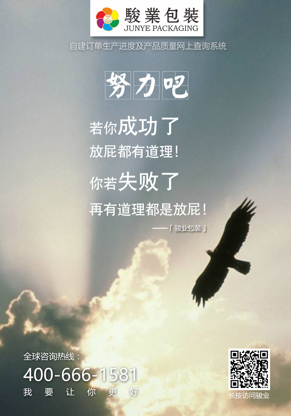 都說(shuō)成年人的世界里從來(lái)沒(méi)有容易二字,在這個(gè)鋼筋水泥森林里,我們就像一個(gè)沒(méi)有根的蒲公英在這個(gè)城市里飄著,搖擺不定的生活,人來(lái)人往,我們每天接觸到各種不同的人,被不同的“氣場(chǎng)”給包圍著,其實(shí)人很容易被周?chē)氖挛镉绊?,或許在來(lái)上班的路上剛好聽(tīng)到一個(gè)人在抱怨生活,那么可能你也會(huì)覺(jué)得生活不易,從而一整天郁郁寡歡,所以為了不讓駿業(yè)包裝的小伙伴們帶著負(fù)能量工作,駿業(yè)包裝的小張為大家每天準(zhǔn)備了一點(diǎn)正能量的雞湯,不用客氣,大家一起來(lái)干了這篇雞湯吧!