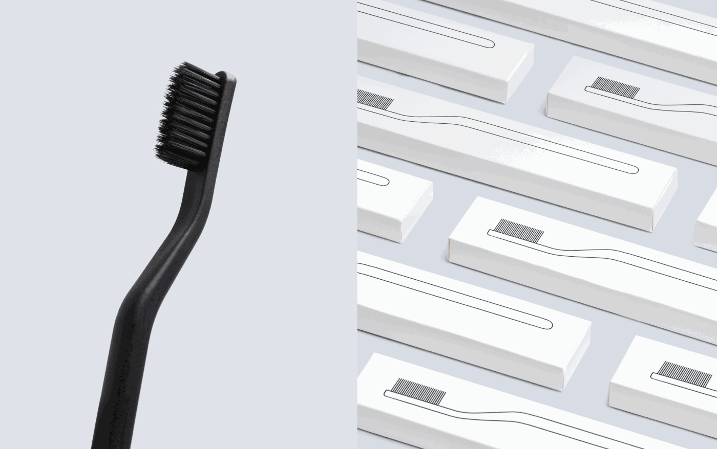 在牙刷的設計上不同于超市貨架上的牙刷,我們的牙刷只有兩種顏色可供選擇——黑色和白色。它是一個簡單的、最小的、永恒的設計配件,適合任何浴室。
