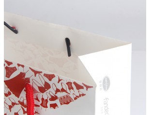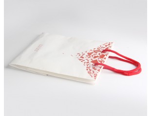 此款紙袋設計選用了250g單銅紙,雙色印刷,過光膠,搭配尼龍圓繩的手提繩。服裝紙袋設計,以白色為主打色,搭配些許紅色圖案,和紅色的尼龍圓繩,白色和紅色的經典搭配讓氣氛顯得更加的優(yōu)雅廣州駿業(yè)紙袋定做采用優(yōu)良材質,流程機械化與人工的結合,量身定制增值型的手提紙袋。