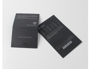 此款創(chuàng)意吊牌,采用了黑卡紙,單色印刷,其經(jīng)典的黑白簡潔搭配,給人一種大大方方的爽利感覺服裝吊牌的設(shè)計采用了折疊的卡片式樣,在一定程度上節(jié)約了成本的運(yùn)輸。廣州駿業(yè)16年包裝印刷行業(yè)經(jīng)驗,想定制吊牌,歡迎致電:020-66677799
