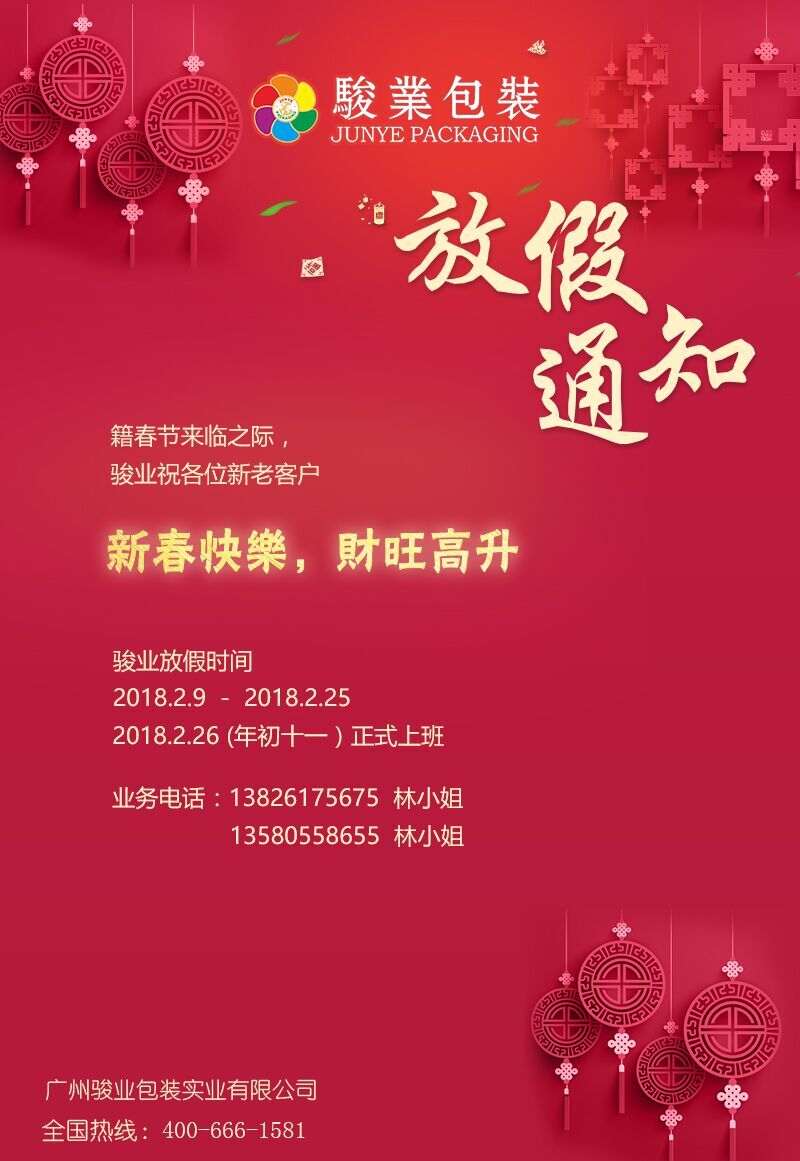 駿業(yè)包裝廠在這里提早祝各位新春快樂(lè),闔家團(tuán)圓,丁財(cái)兩旺!