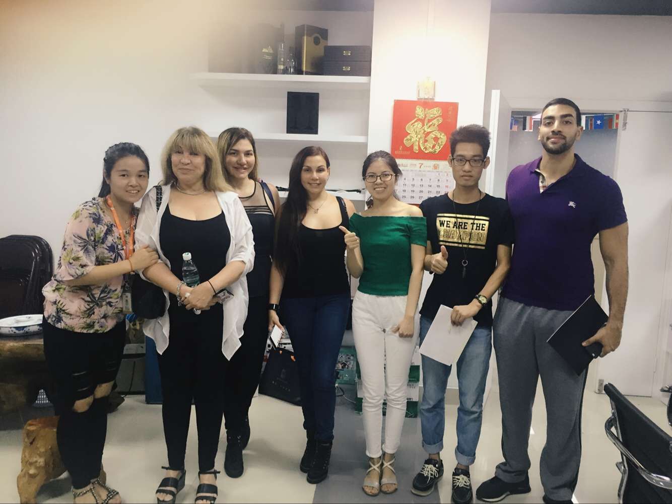 下面是阿聯(lián)酉客戶首次來駿業(yè)包裝考察后,當(dāng)場簽訂商標(biāo)吊牌制作的銷售合同后大合照。