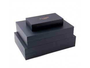 此款皮具包裝盒,表面那磨砂質(zhì)感的碳黑平面面紙,就知道此包裝是專門為英國(guó)產(chǎn)品包裝的。皮具包裝盒,堅(jiān)硬厚實(shí),表面平滑磨砂質(zhì)感,光澤靚麗,產(chǎn)品價(jià)值檔次瞬間大升。