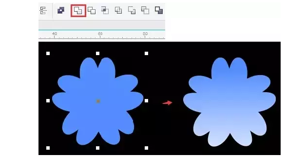 設(shè)計(jì)服裝吊牌的第三步:填充漸變色 將所有心形圖形全選,執(zhí)行屬性欄中的“合并”命令,合并多個(gè)心形對(duì)象以創(chuàng)建帶有共同屬性的單個(gè)曲線對(duì)象,并將該對(duì)象進(jìn)行漸變顏色填充,以你喜歡的顏色來填充,沒有標(biāo)準(zhǔn)。